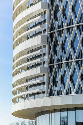 A key feature of The Circle is the predominately glass façade which allows maximum light to enter the space. To break-up the mass of glass, Jaspers-Eyers Architects added larson® aluminium cladding from Alucoil.